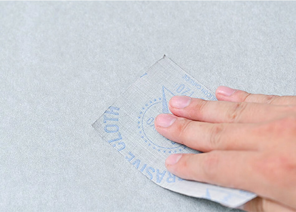 サンドペーパーなどで汚れや脆弱層を除去し、砂や埃を清掃してください。