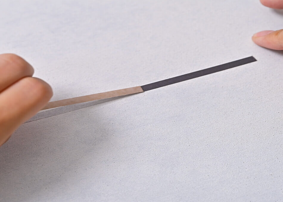 使用前に上の層のみを一周剥がすことで上下の層を入れ替え、1本で2色のメジラインを作ることができます。