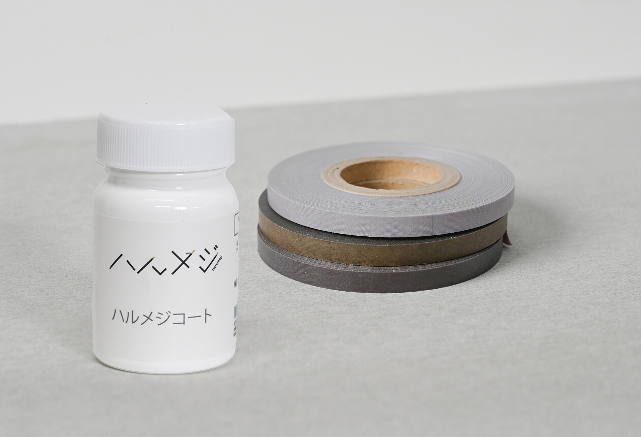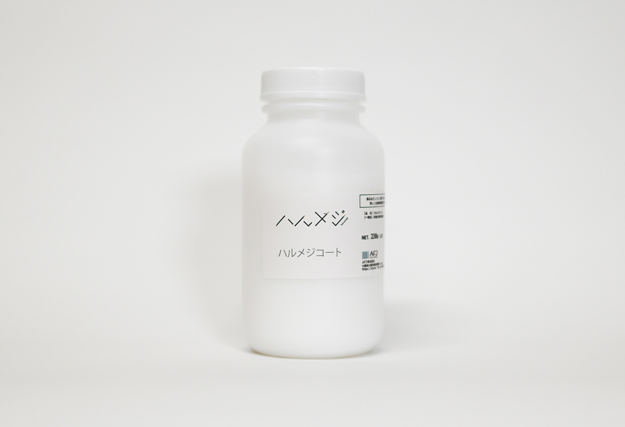 ハルメジの上から塗布することで耐久性を向上させる水性のコーティング塗料。摩耗による劣化や湿気などによる剥がれを防ぐことができます。 |