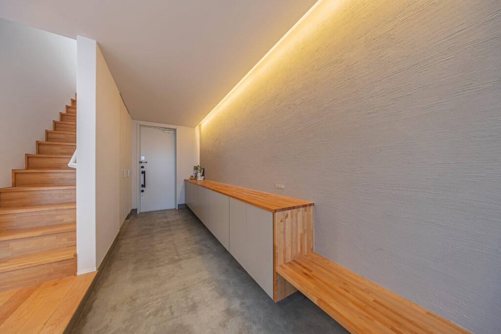 約7年前、玄関から土間、そしてリビング・キッチンまでがつながる“カフェのような住まい”を提案したことがきっかけです。 その住宅では、お子さまが土間〜リビング〜ワークスペースを自由に走り回り、玄関越しに「ただいま」「おかえり」が交わせる距離感が非常に好評でした。